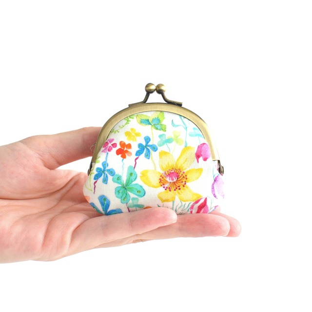 ◆◇白玉 花柄マチ付きがま口(S) - 「春の花園」made in Japan fabric