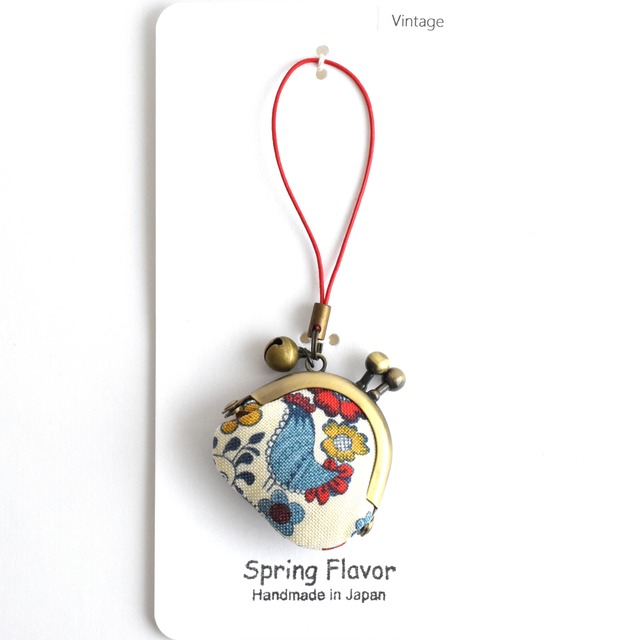 ヴィンテージの生地を使った極小サイズのがまぐちアクセサリーです。
