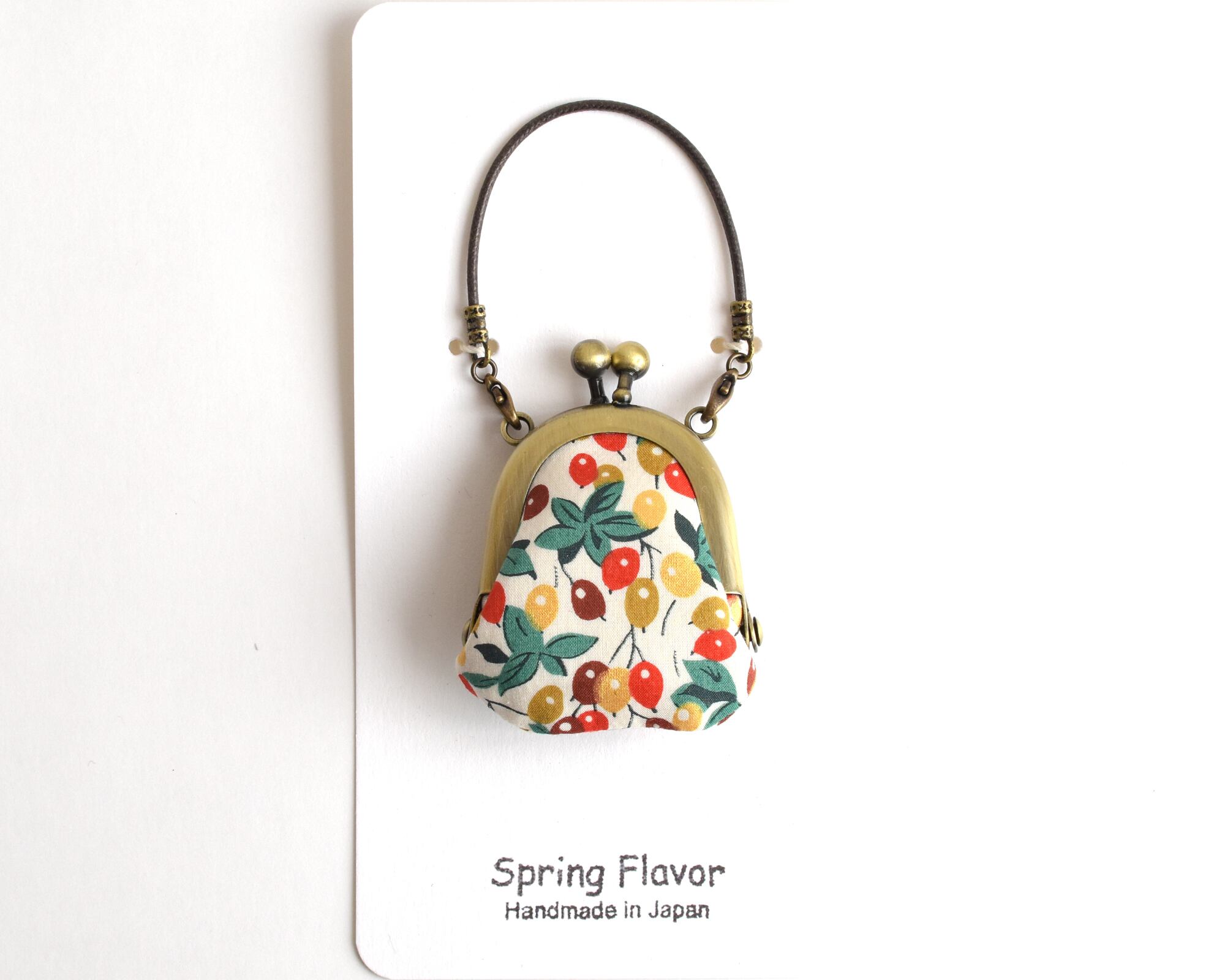 リバティの生地を使ったちいさなハンドバッグのようながまぐちアクセサリーです。
