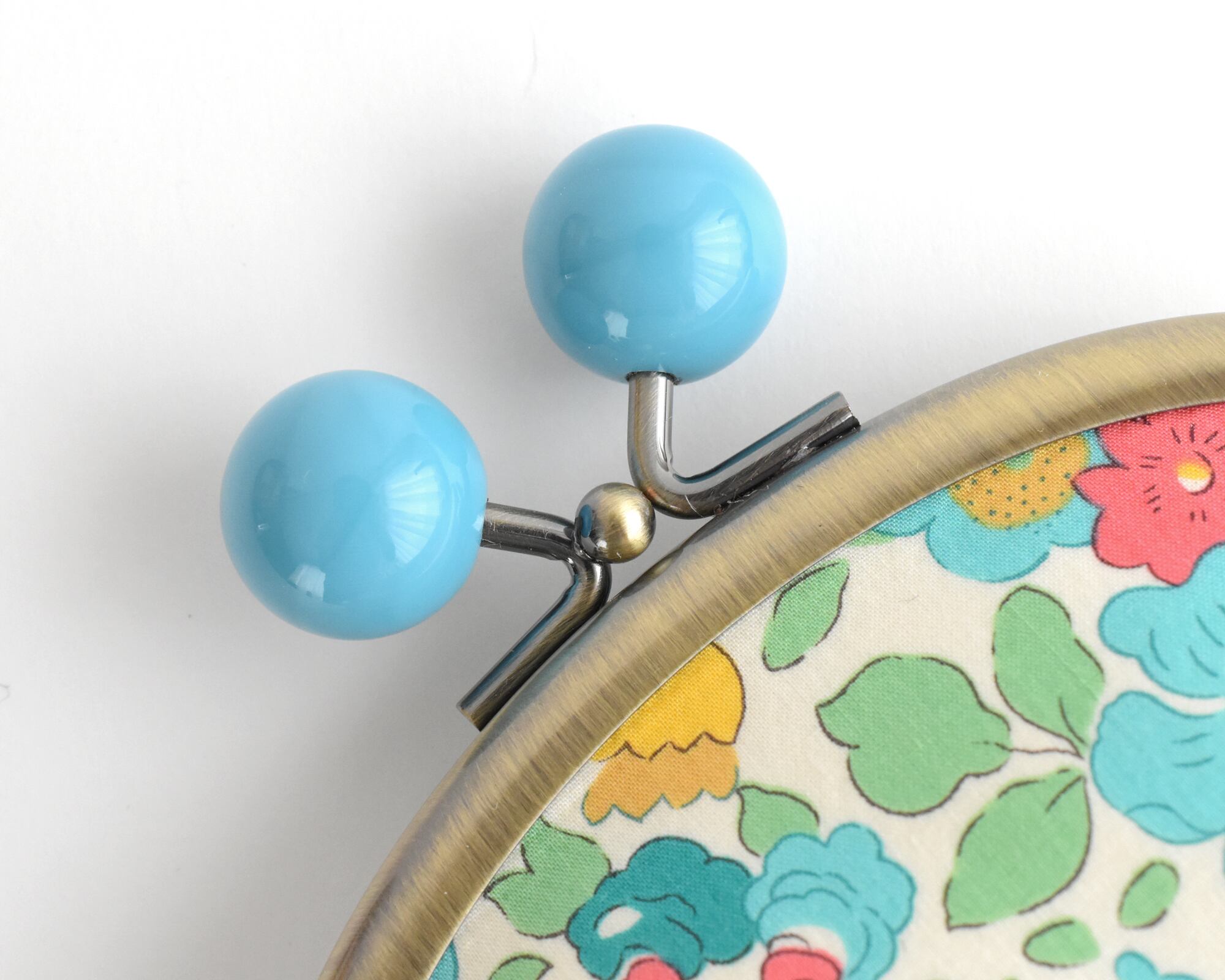 ◆◇トルコブルー玉 花柄がま口(MS) Liberty "Betsy(ベッツィ)" Blue
