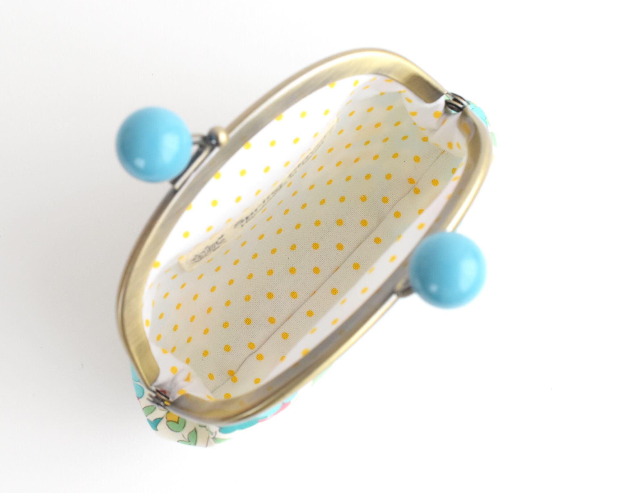 裏:白にイエローのドット柄のアメリカンコットン生地を使用しております。