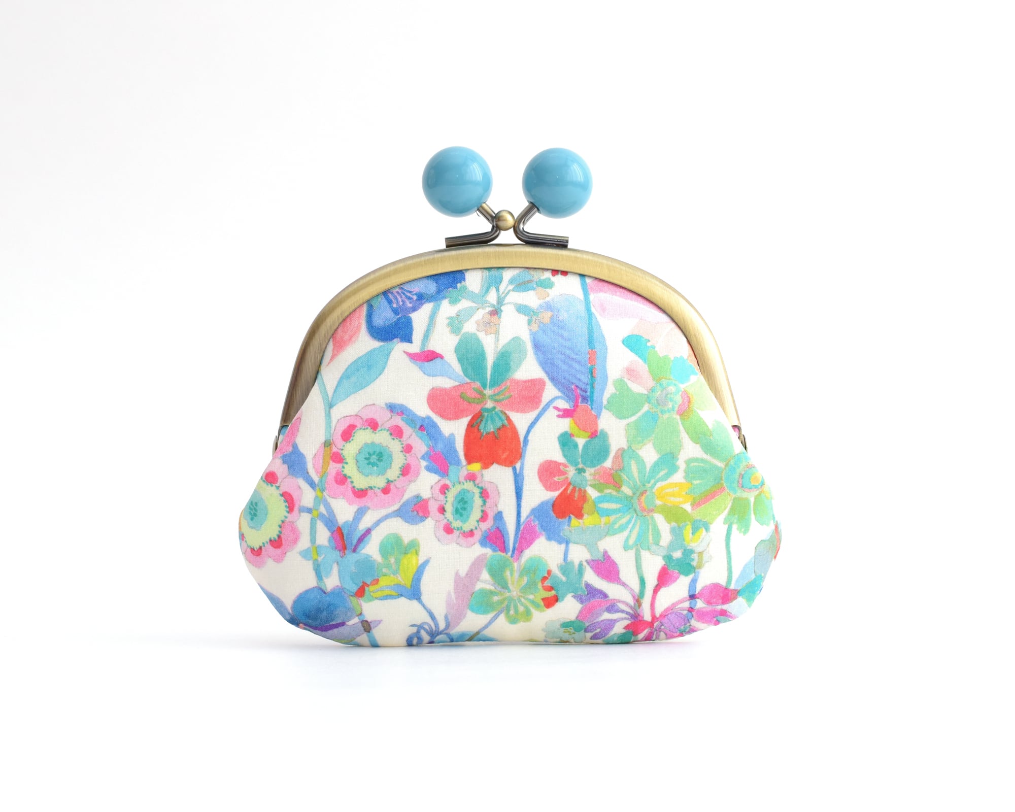 ●◆◇トルコブルー玉 花柄がまぐち(MS) - Liberty "Proposal(プロポーザル)"