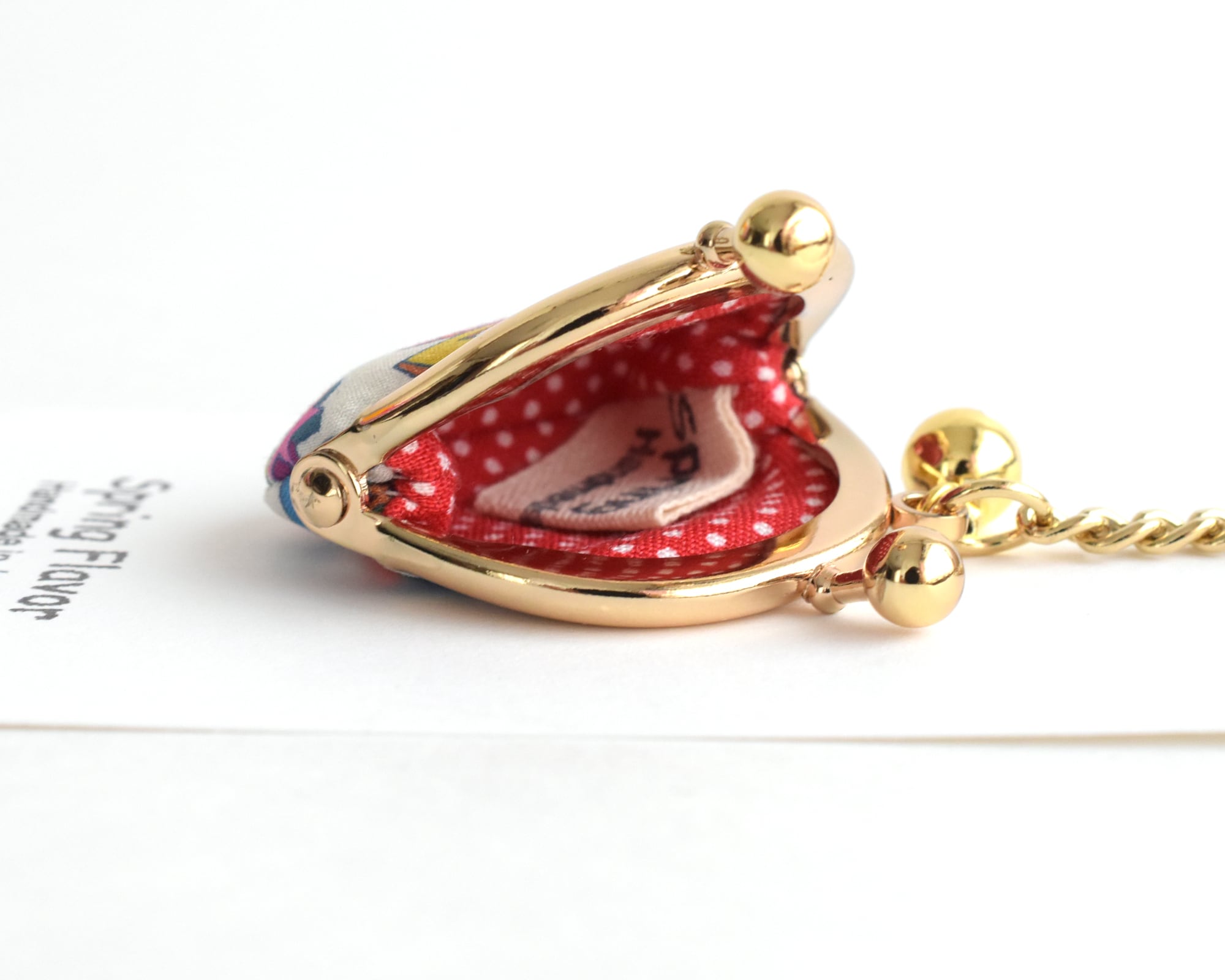 リバティの生地を使った極小サイズのがまぐちキーホルダーです。