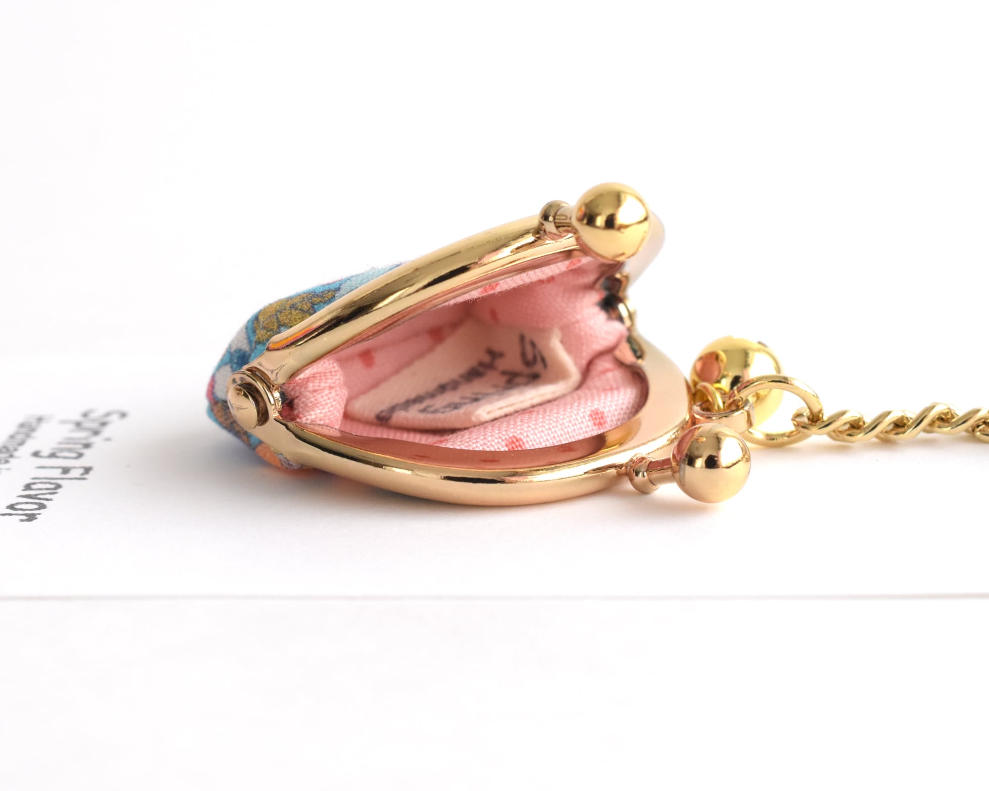 海外の生地を使った極小サイズのがまぐちキーホルダーです。