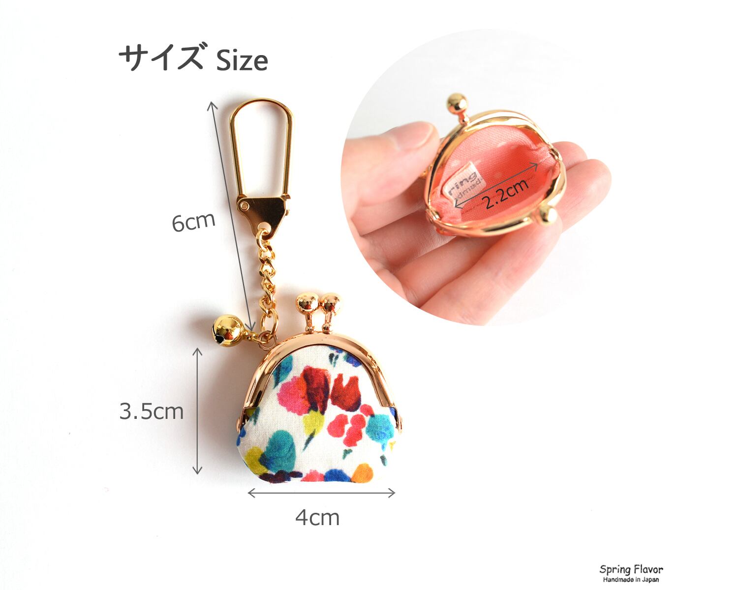 リバティの生地を使った極小サイズのがまぐちキーホルダーです。