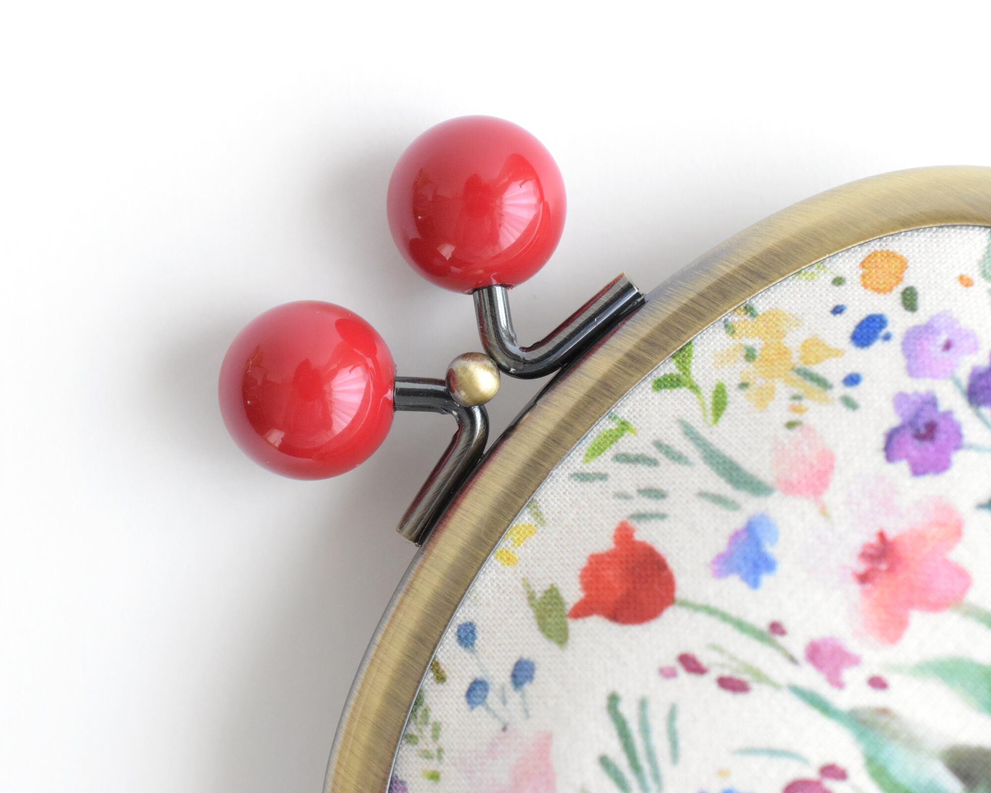 赤玉がアクセントになったデザインの口金を使用しております。