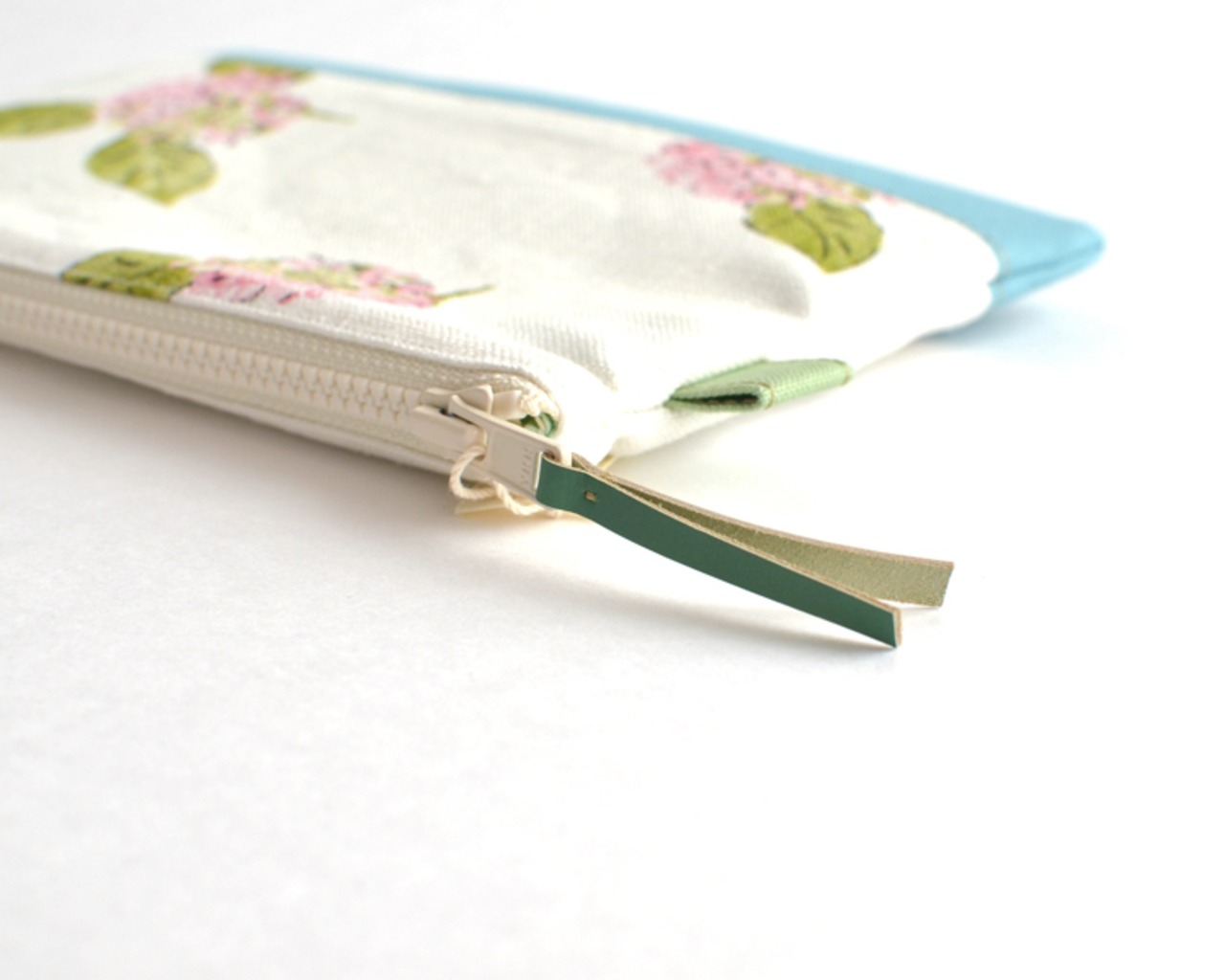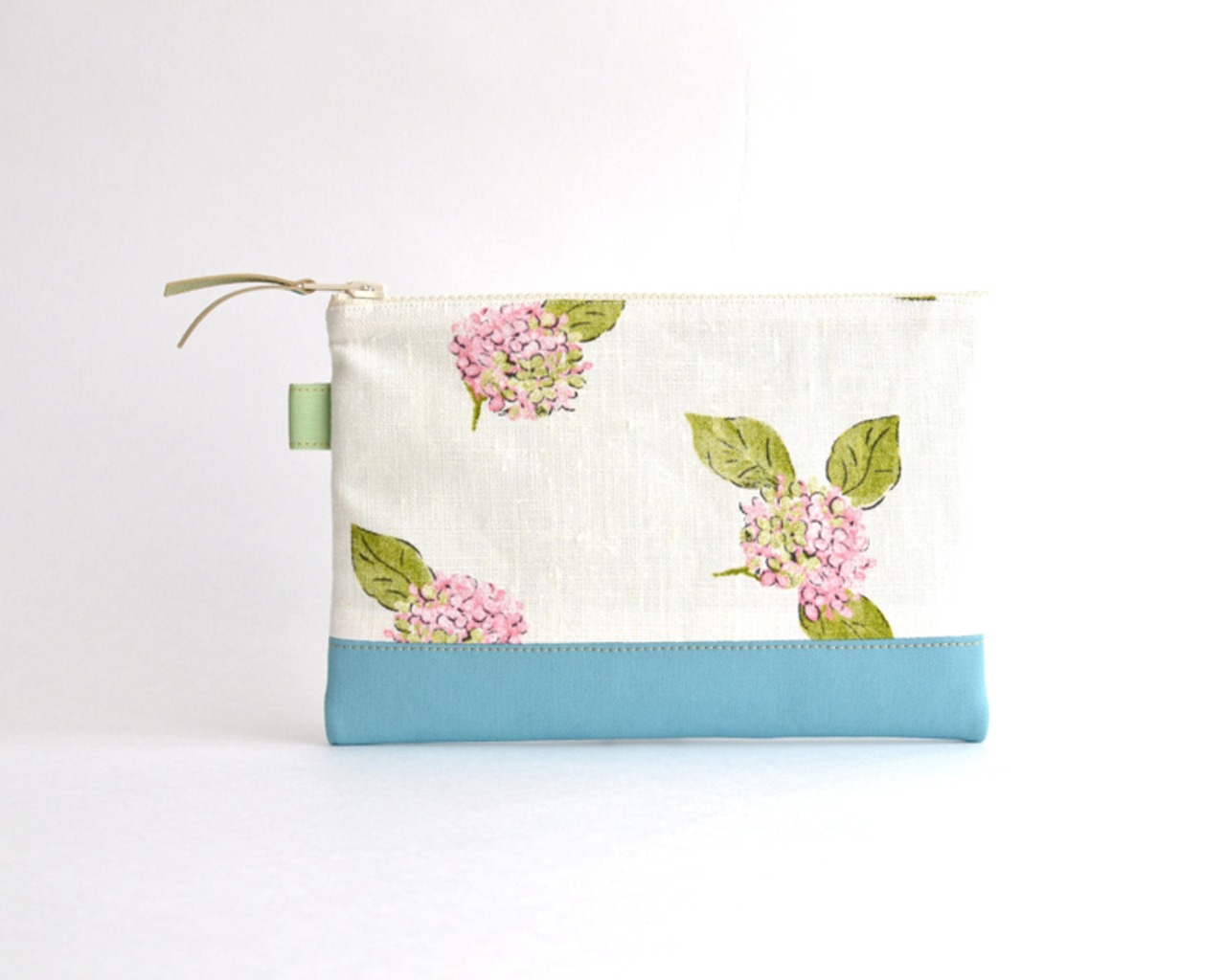 フランス製のリネン生地と無地の帆布生地を使ったポーチです。