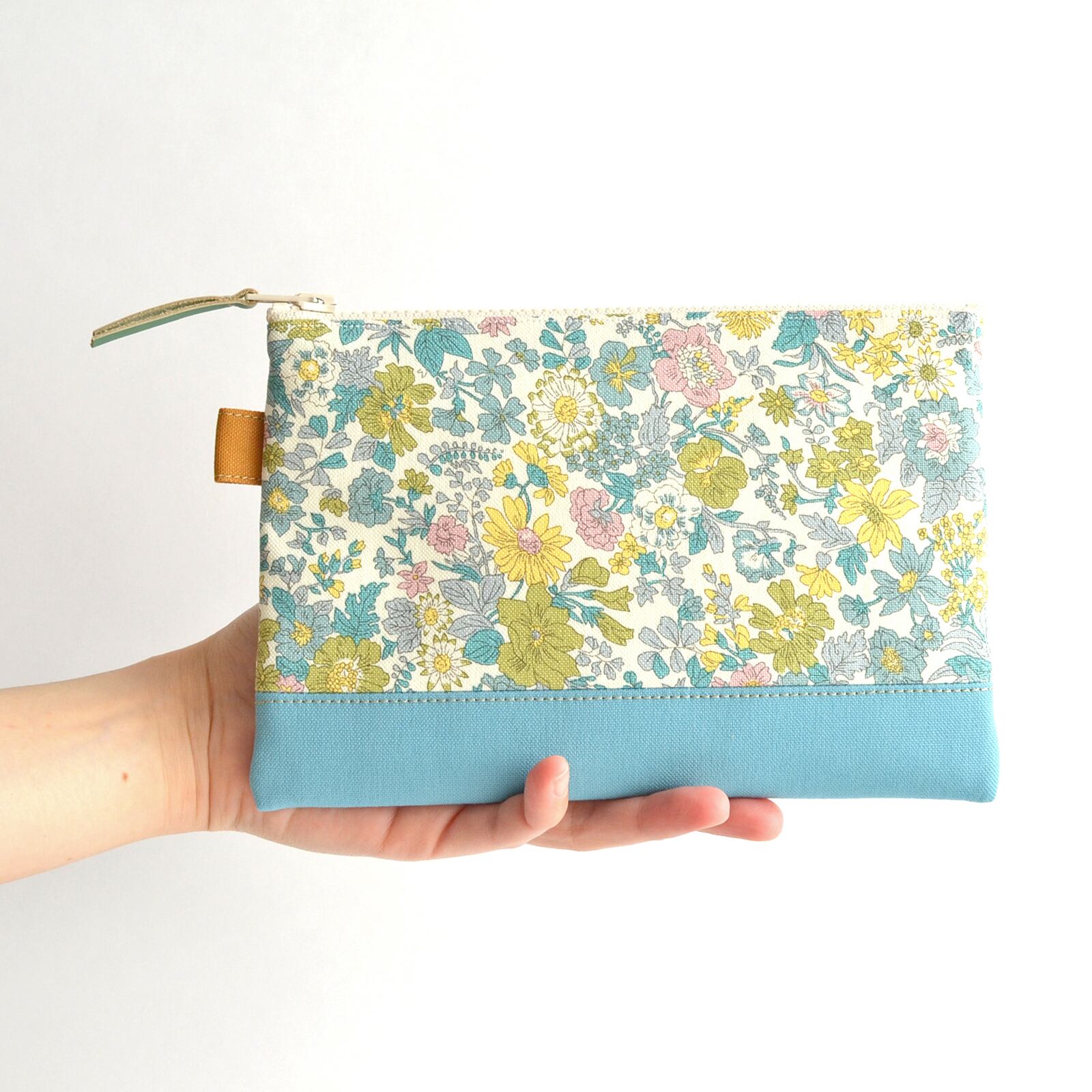 リバティの帆布生地と無地の帆布生地を使ったポーチです。