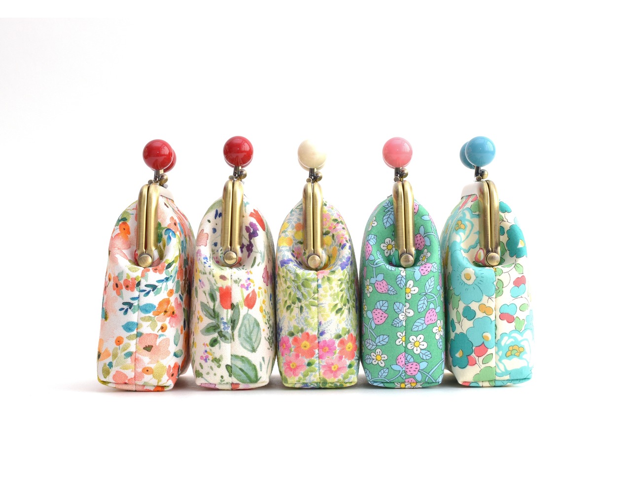 海外の生地を使用したマチ付きの小さいがまぐちポーチです。
