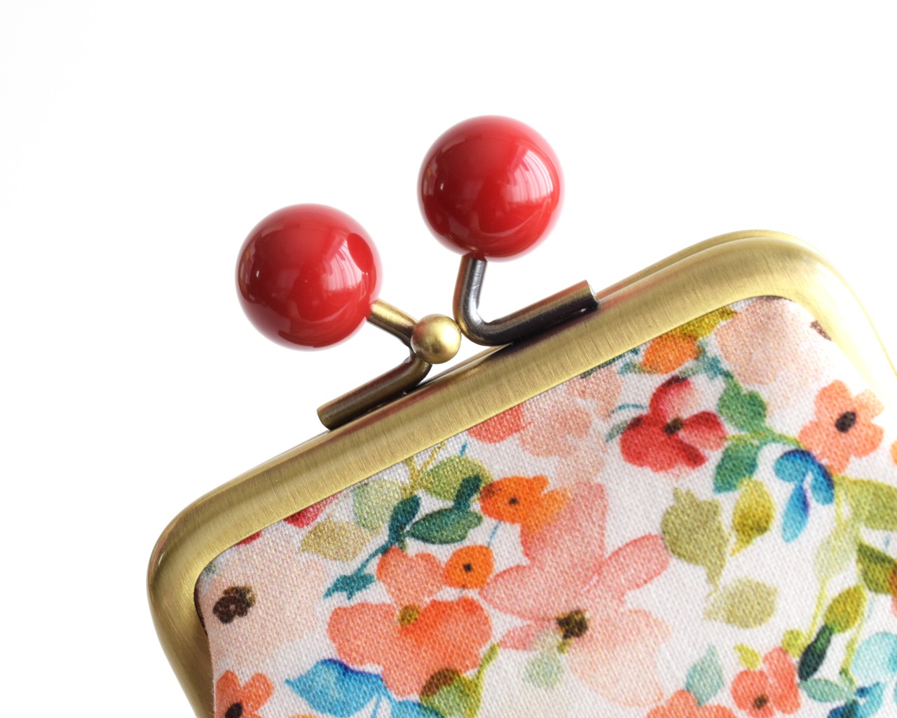 ◆◇赤玉 花柄マチ付きがま口(S) -水彩風 ボタニカル- Import "Coral Flowers"