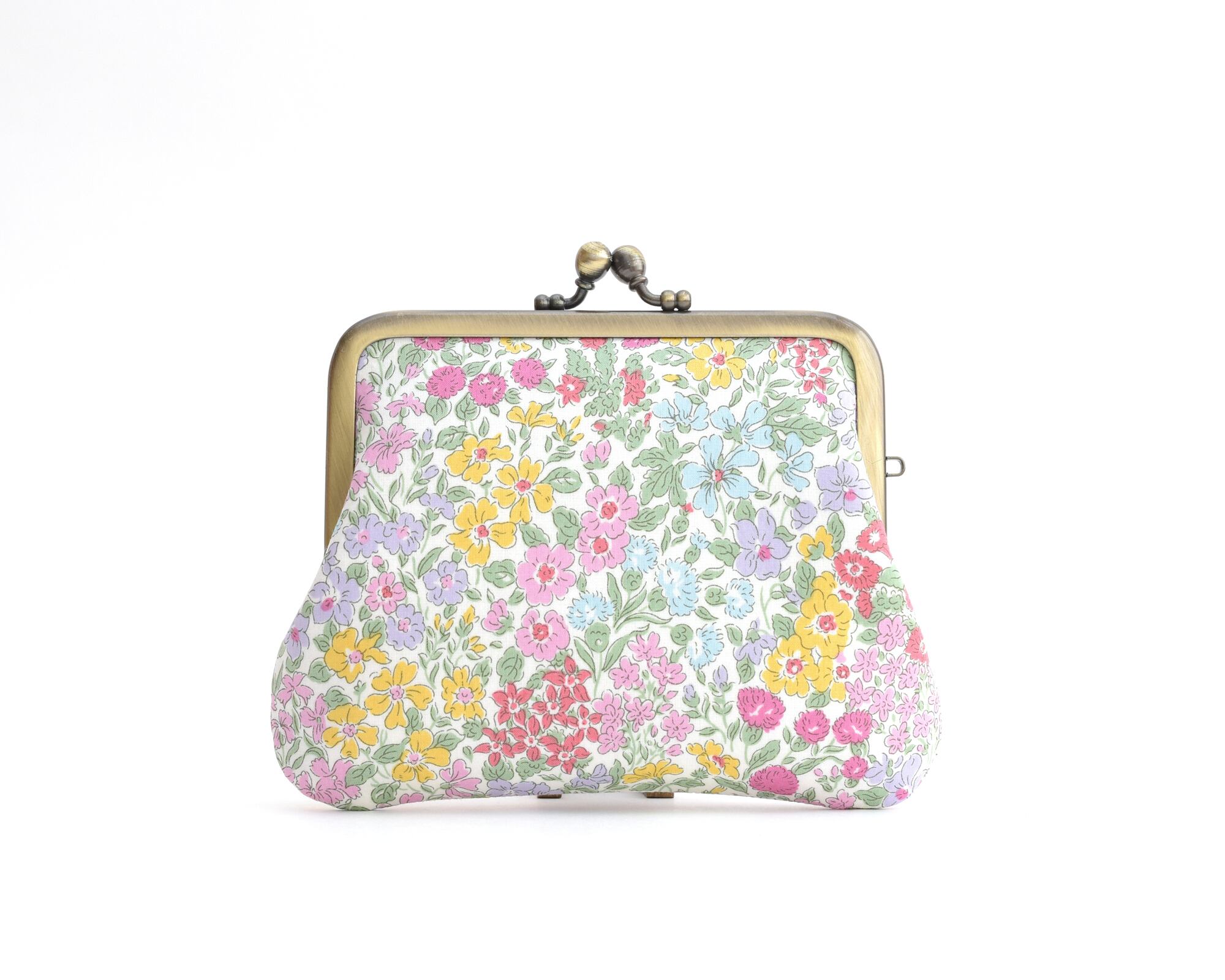 リバティの生地を使ったがまぐちポーチです。