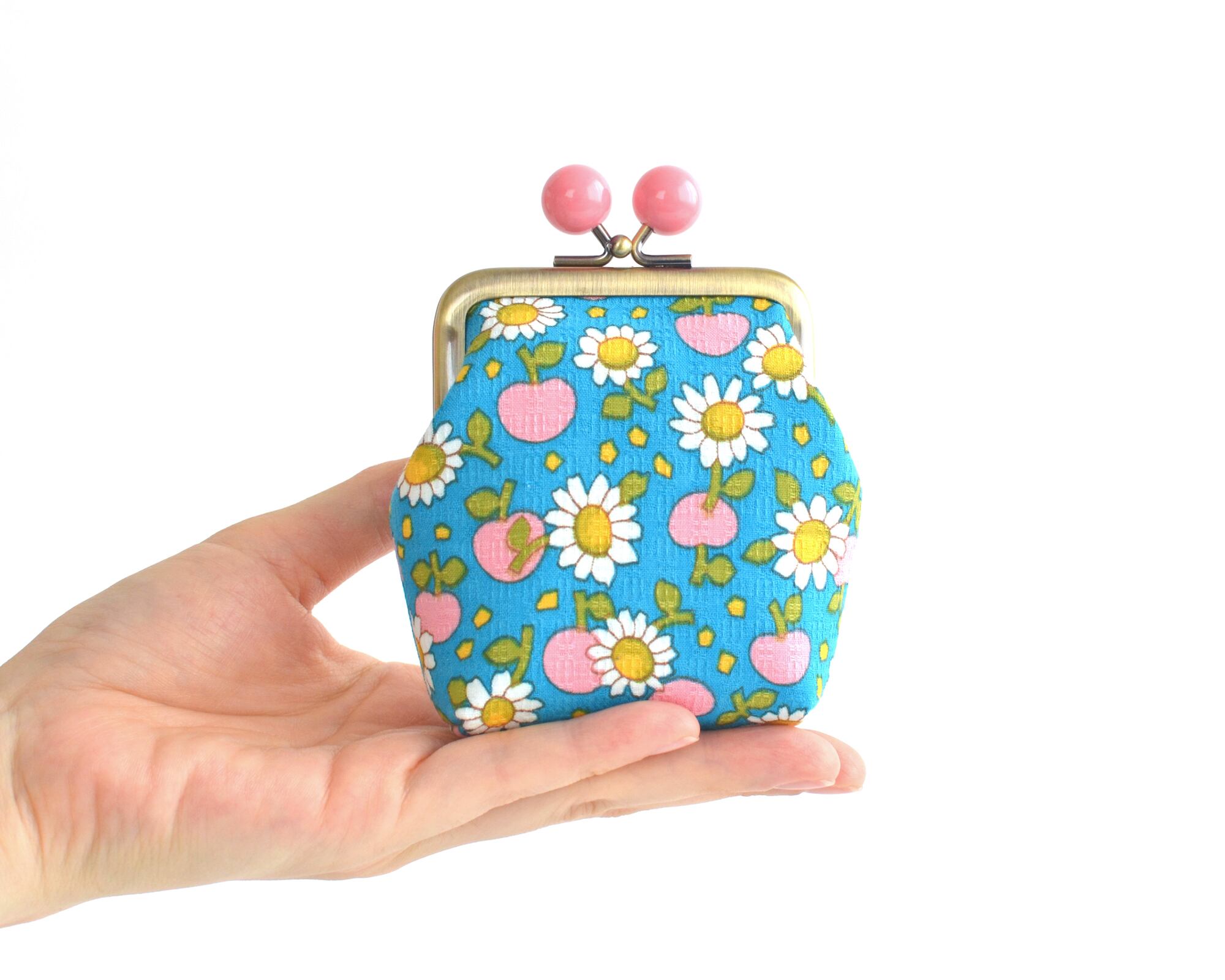ヴィンテージの生地を使用したマチ付きの小さいがまぐちポーチです。