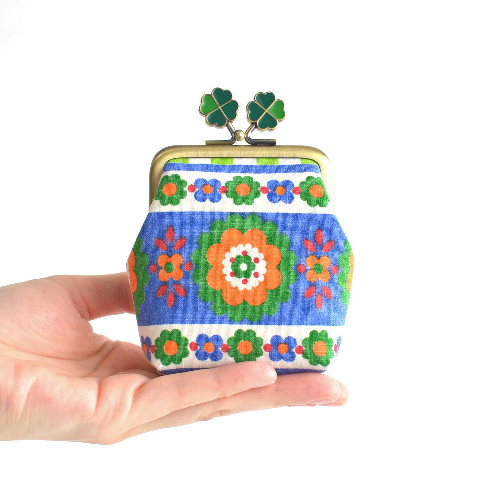 ヴィンテージの生地を使用したマチ付きの小さいがまぐちポーチです。