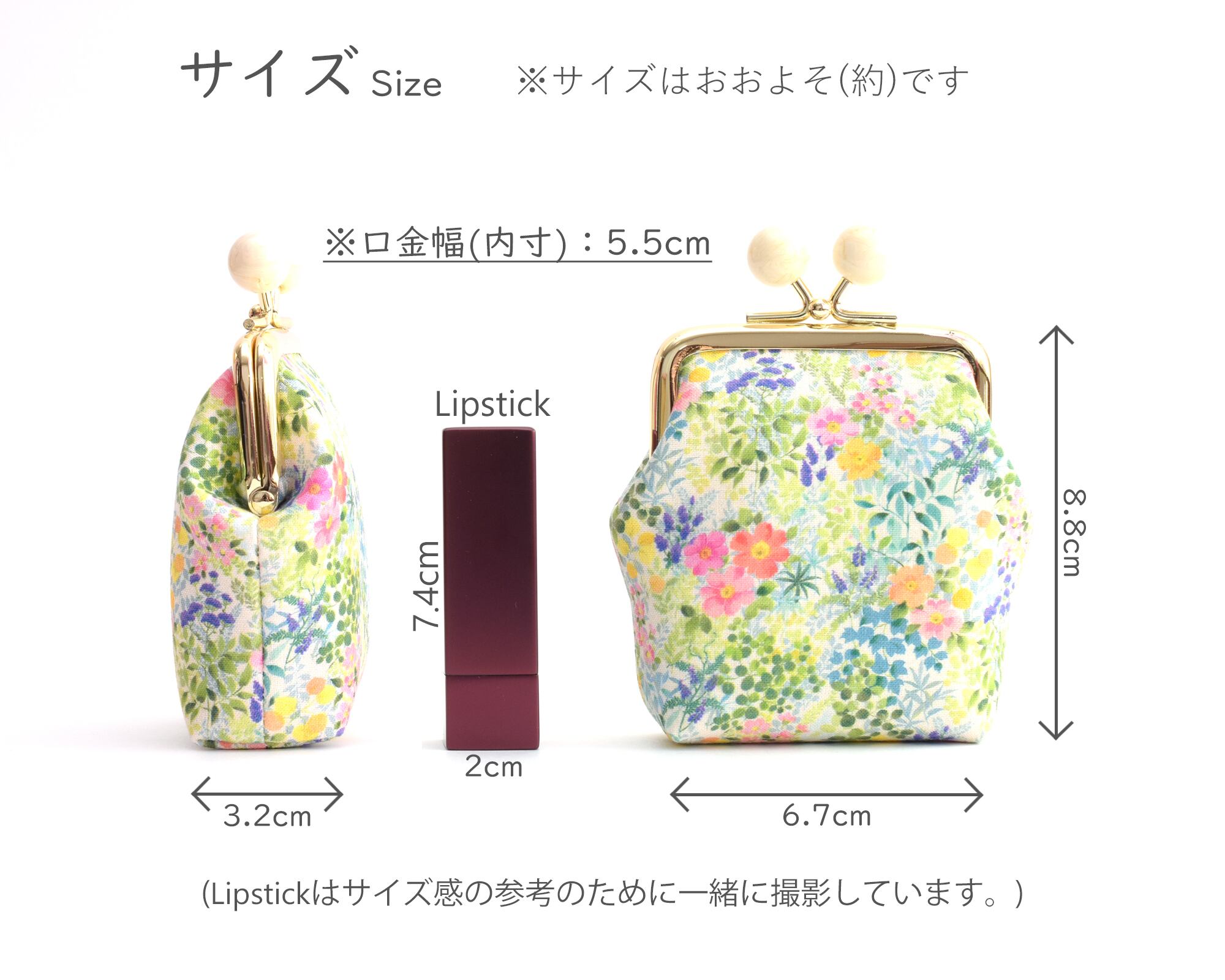 [外寸] 幅(最大) 9cm x 高さ 8.8cm(玉部分含まず) x マチ 3.2cm