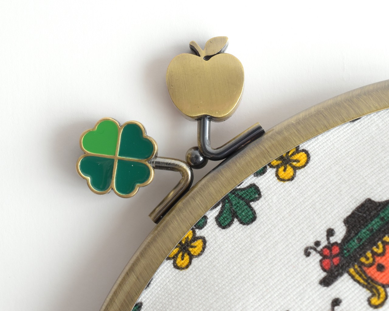◆◇リンゴ×クローバー玉 花柄がま口(M)[ポケット付き] Vintage "Boy and Girl"
