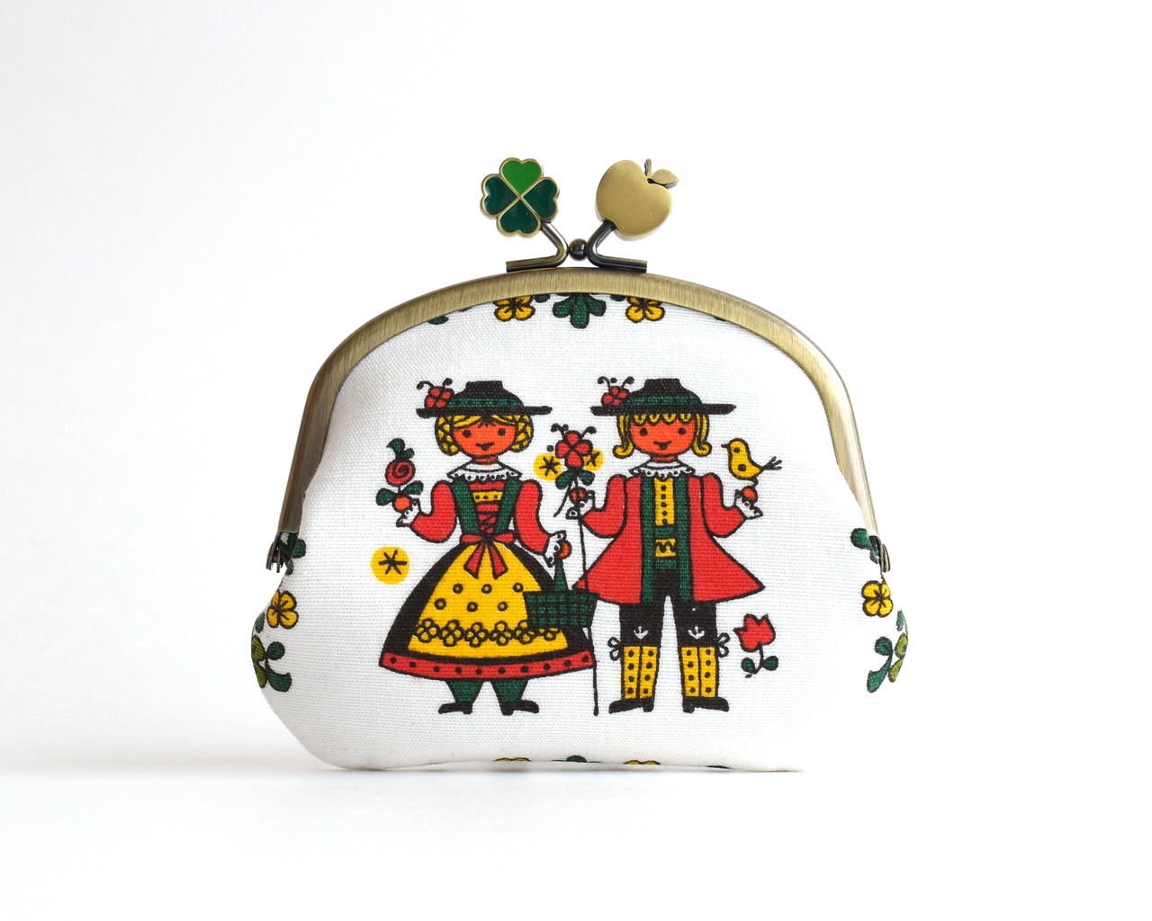 北欧風の民族衣装をまとった男の子と女の子のプリントのVintage生地です。