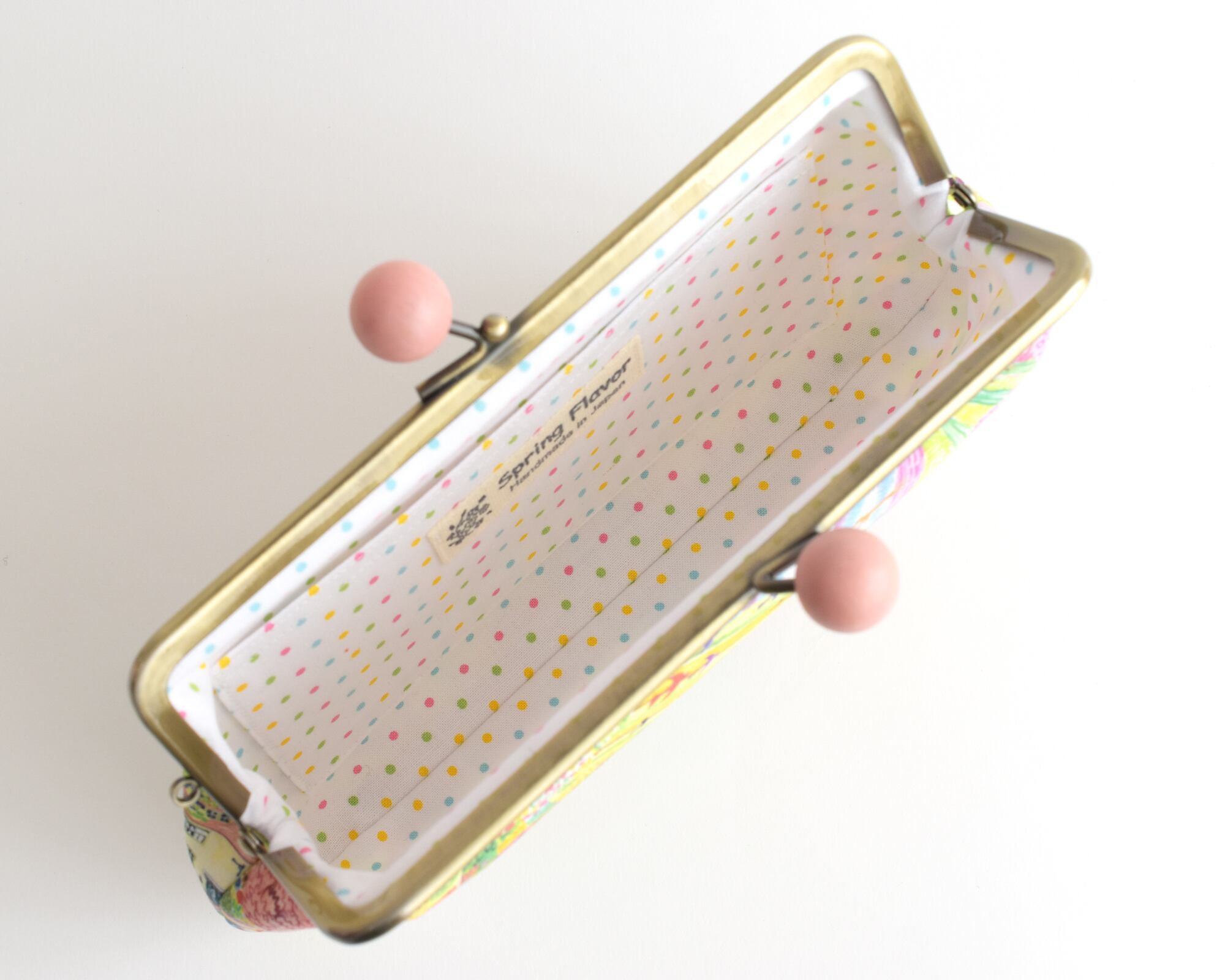 裏:ホワイト地にマルチカラーのドット柄のアメリカンコットン生地を使用しております。